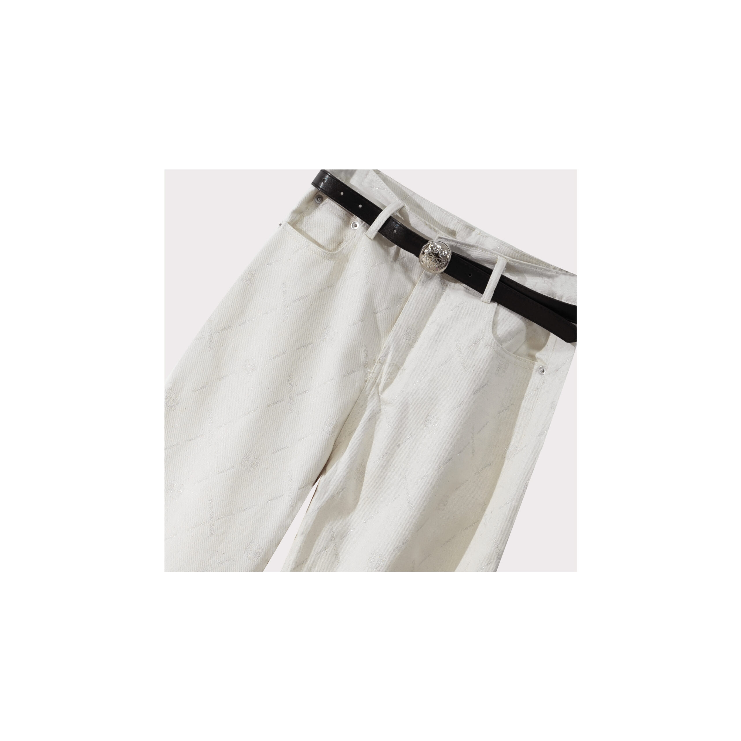 Step into effortless sophistication with these Elegant White Wide-Leg Jeans featuring a chic black belt accent. Designed with a crisp white finish and subtle textured detailing, these jeans bring a refined twist to the timeless denim look. The wide-leg cut not only ensures comfort but also adds a touch of flow and grace to your outfit, making them perfect for both casual and semi-formal styling. The included black belt with its polished buckle adds a modern edge, enhancing the waistline while complementing the overall minimal yet stylish appeal of the jeans. Crafted from high-quality denim with precise stitching, these jeans are made to last, offering both durability and comfort. Whether paired with a fitted blouse and heels for an elegant ensemble or styled with a relaxed top and sneakers for a chic everyday vibe, these jeans are a versatile staple for every wardrobe. Fashion-forward yet timeless, they embody the perfect balance between practicality and style.