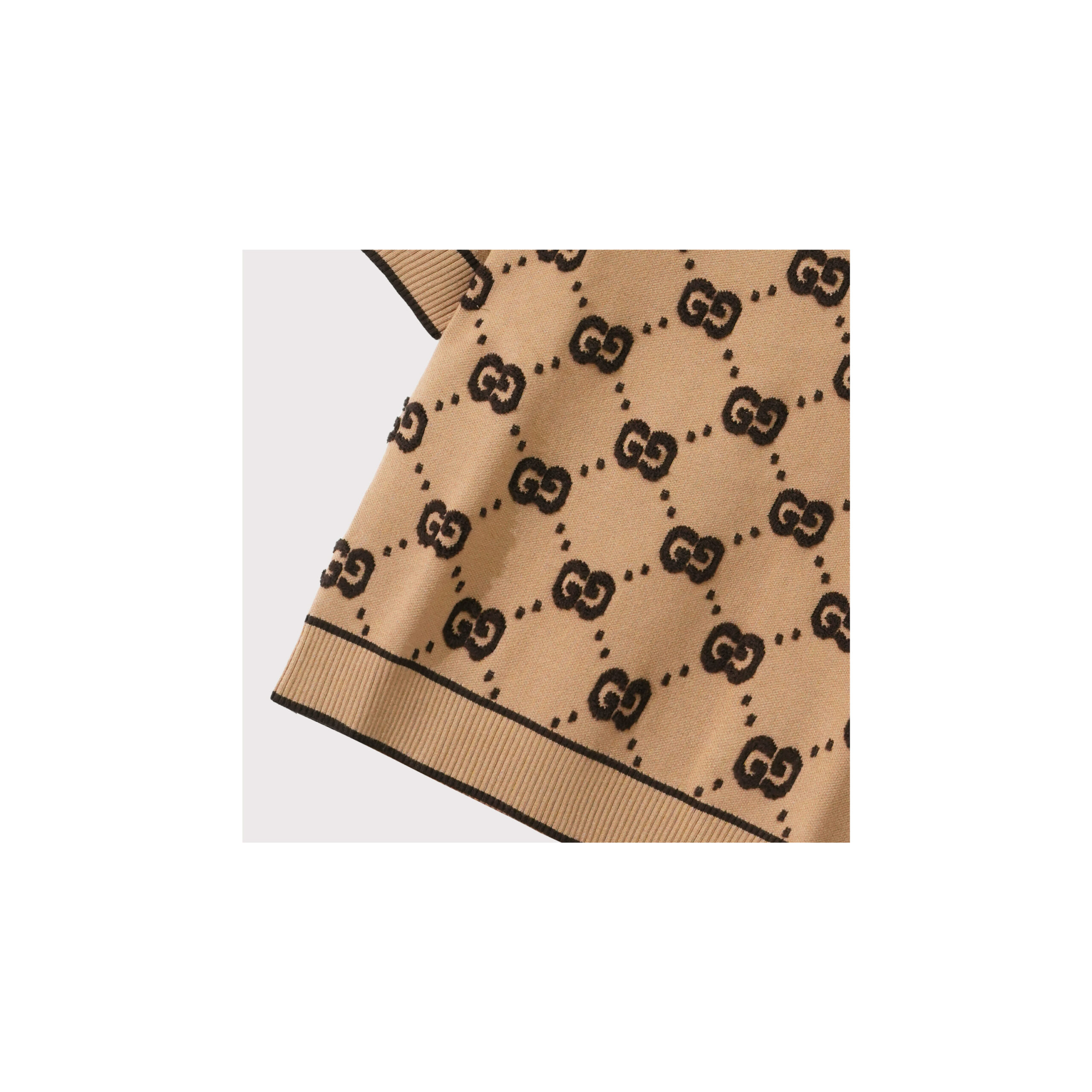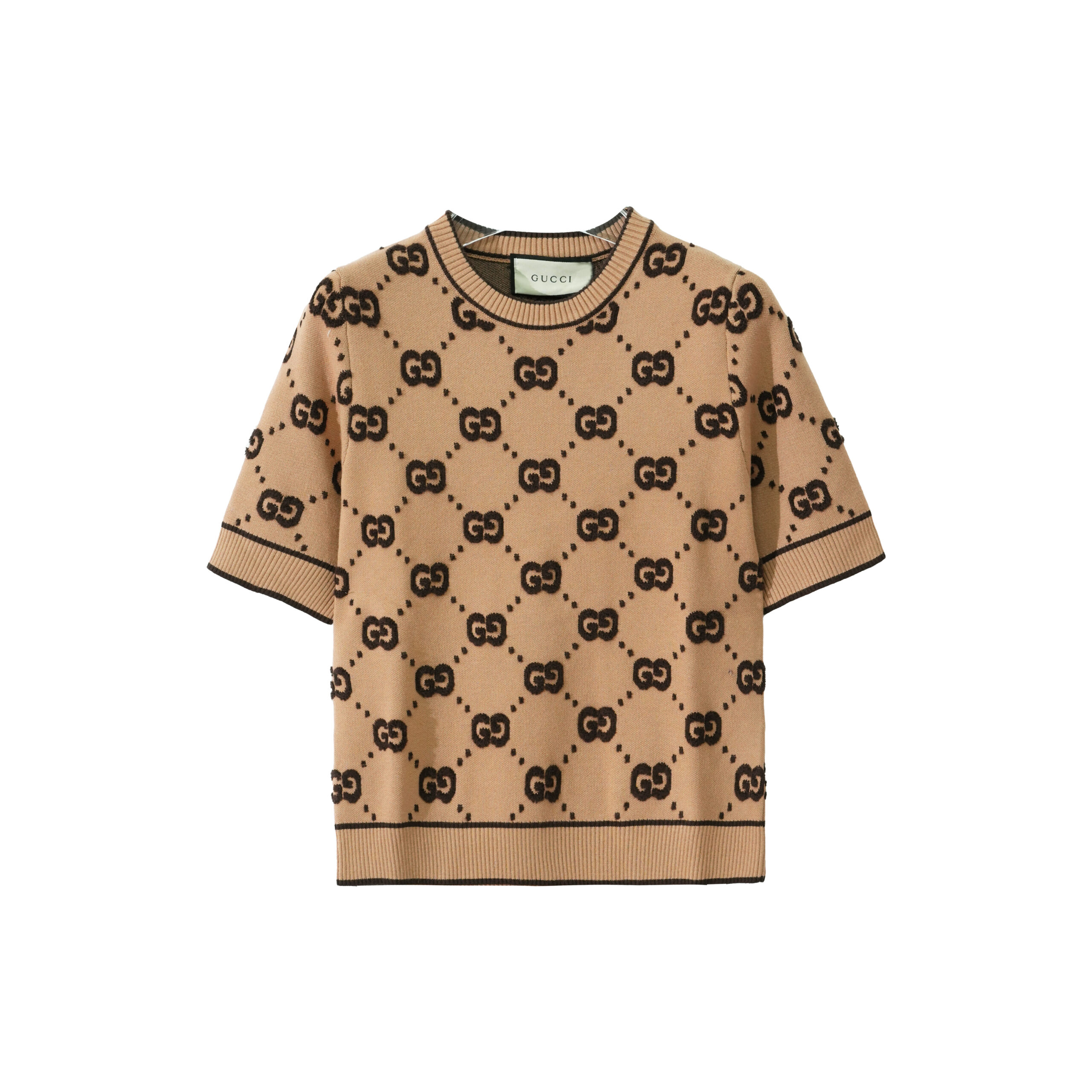 Gucci Beige GG Jacquard Knit Short-Sleeve Top