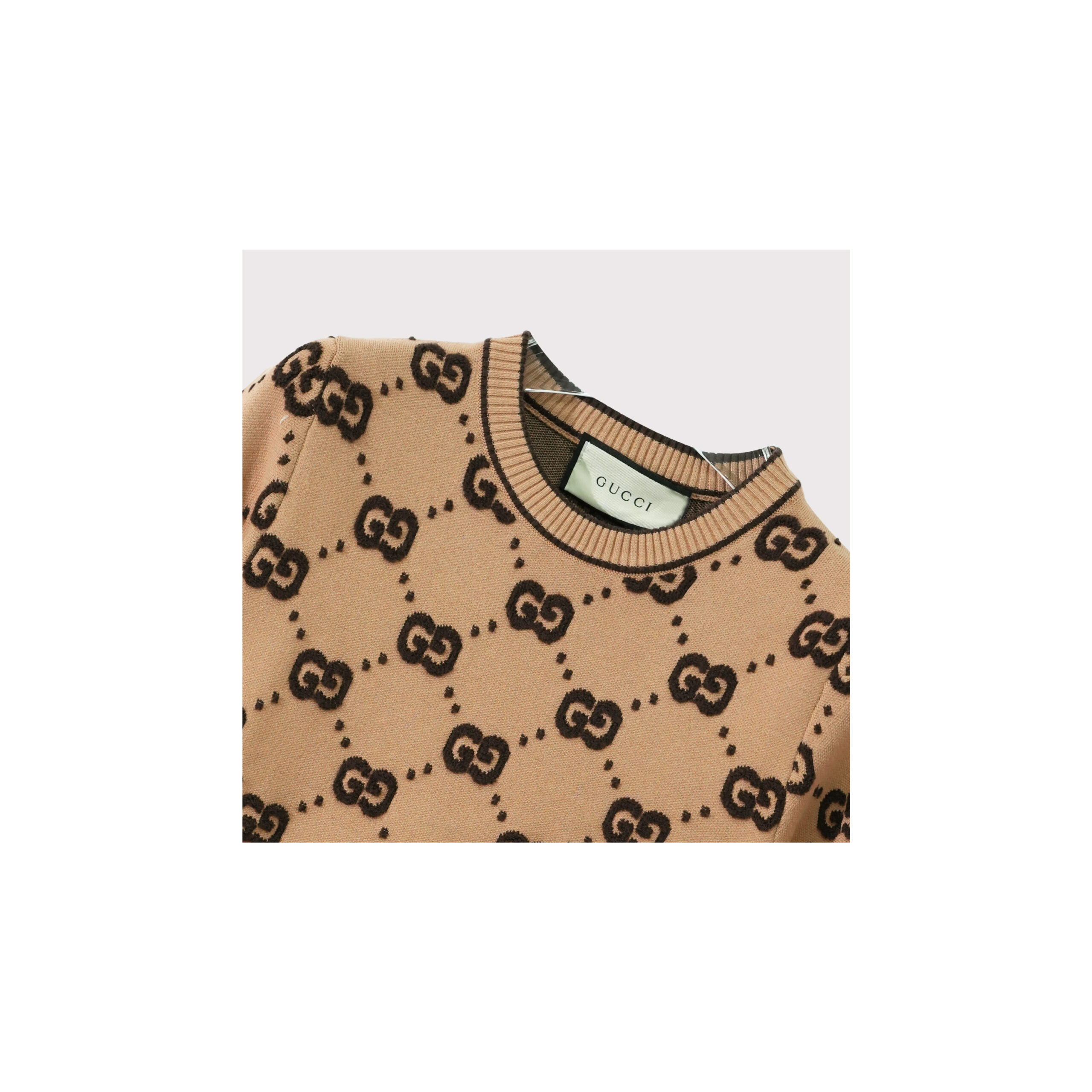 Elegant beige knit fabric with iconic dark brown GG logo jacquard