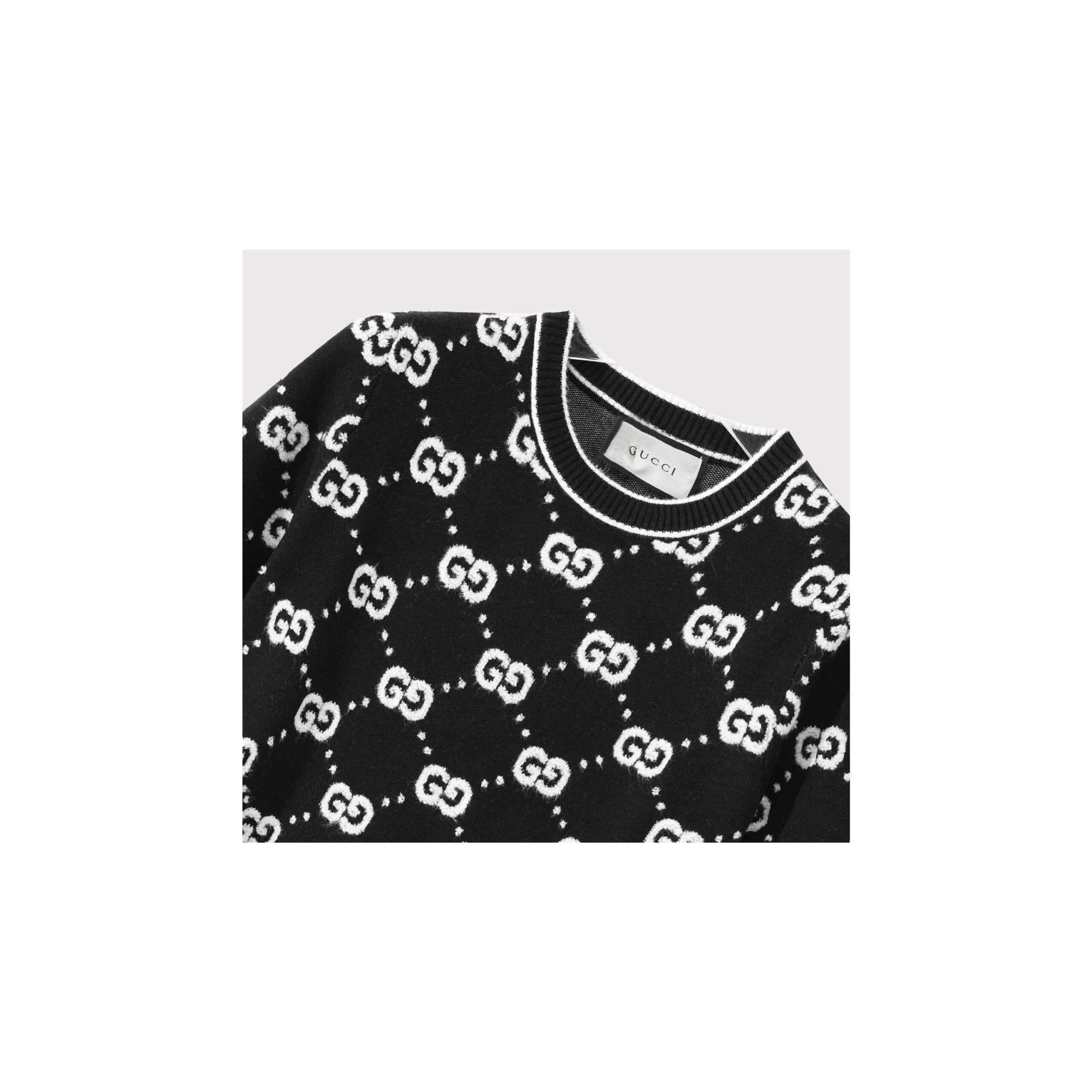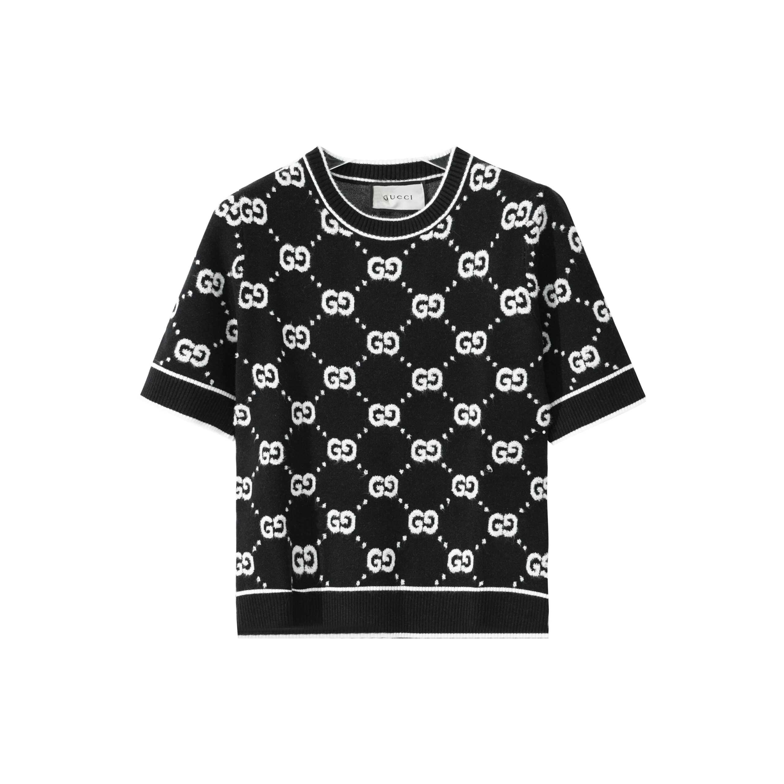 Gucci Black & White GG Jacquard Knit Short-Sleeve Top