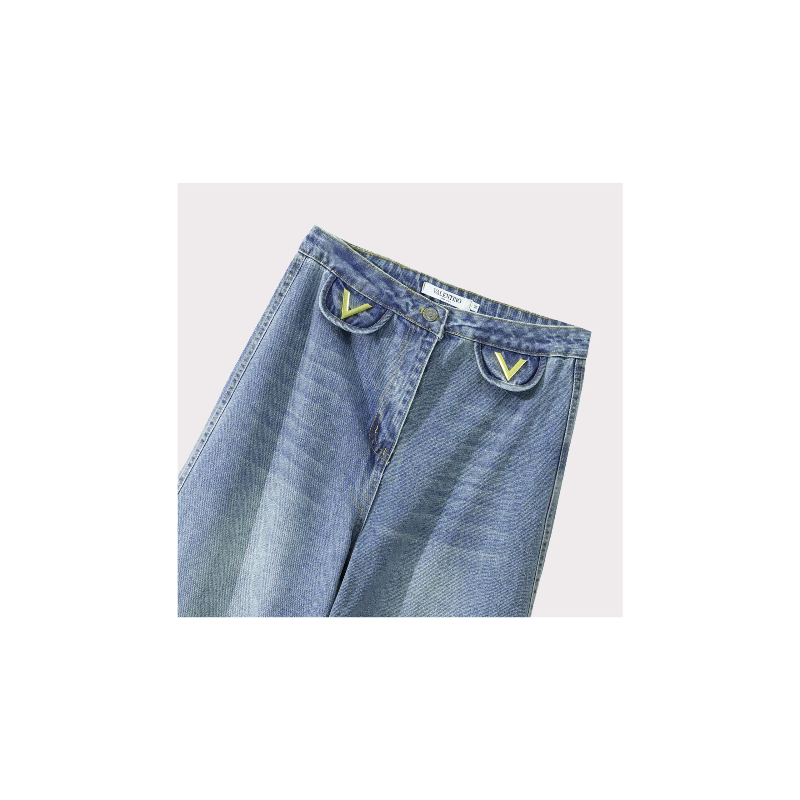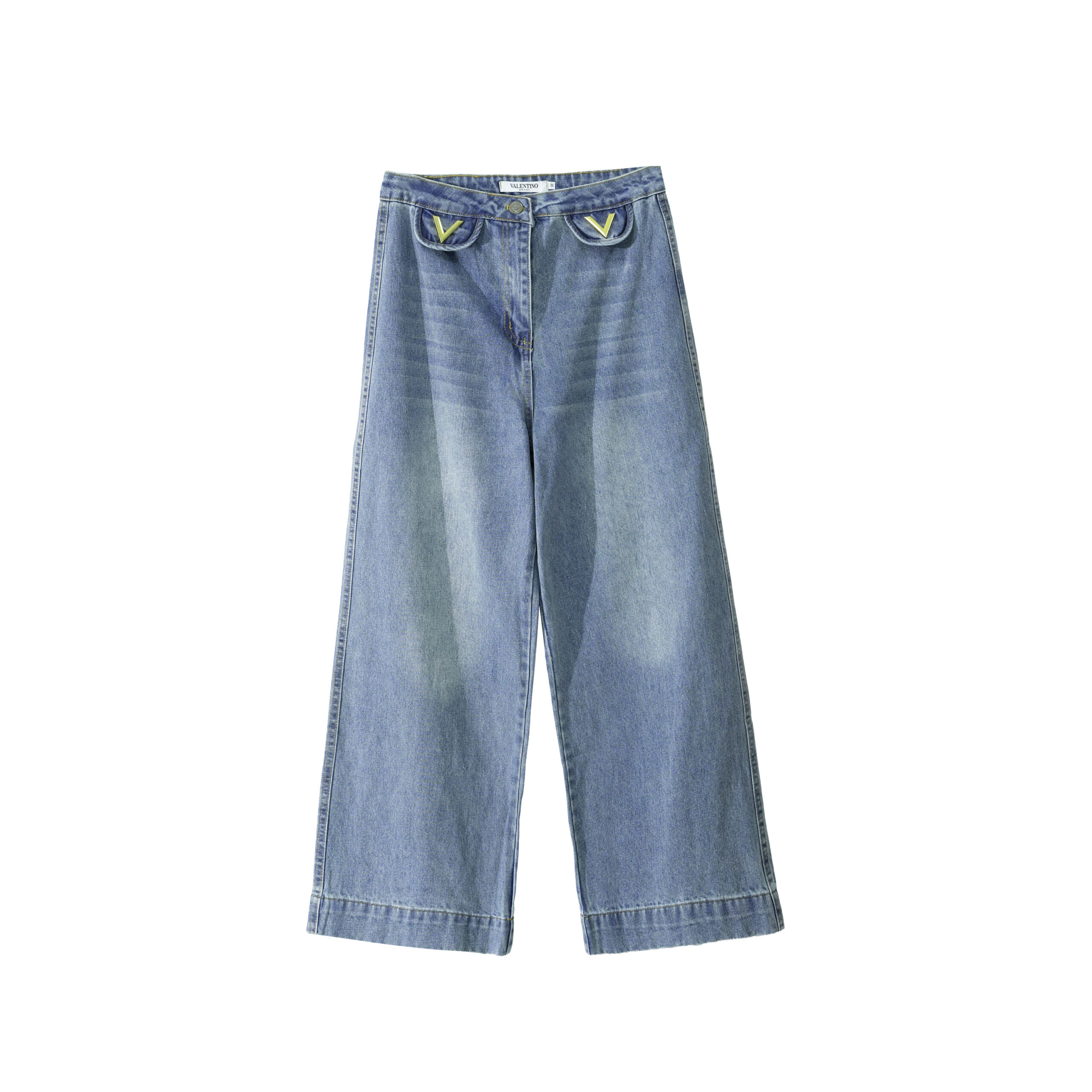 Add a touch of individuality to your wardrobe with these Light Blue Wide-Leg Denim Jeans featuring eye-catching V-shaped pocket accents. Crafted from premium quality denim, these jeans showcase a soft faded wash that enhances their vintage-inspired appeal. The wide-leg cut delivers both comfort and effortless style, making them an essential piece for modern, fashion-forward outfits. The standout detail lies in the uniquely designed front pockets, accented with bold V-shaped stitching, giving the jeans a distinctive character that sets them apart from traditional denim. Built with sturdy stitching, a classic zip-and-button closure, and functional belt loops, these jeans ensure lasting wear and practicality. Whether paired with a tucked-in shirt for a polished casual look or styled with oversized tees and sneakers for a relaxed streetwear vibe, these jeans bring together comfort, versatility, and unique design elements. Perfect for those who love to make a subtle statement, they are a must-have for any contemporary denim collection.