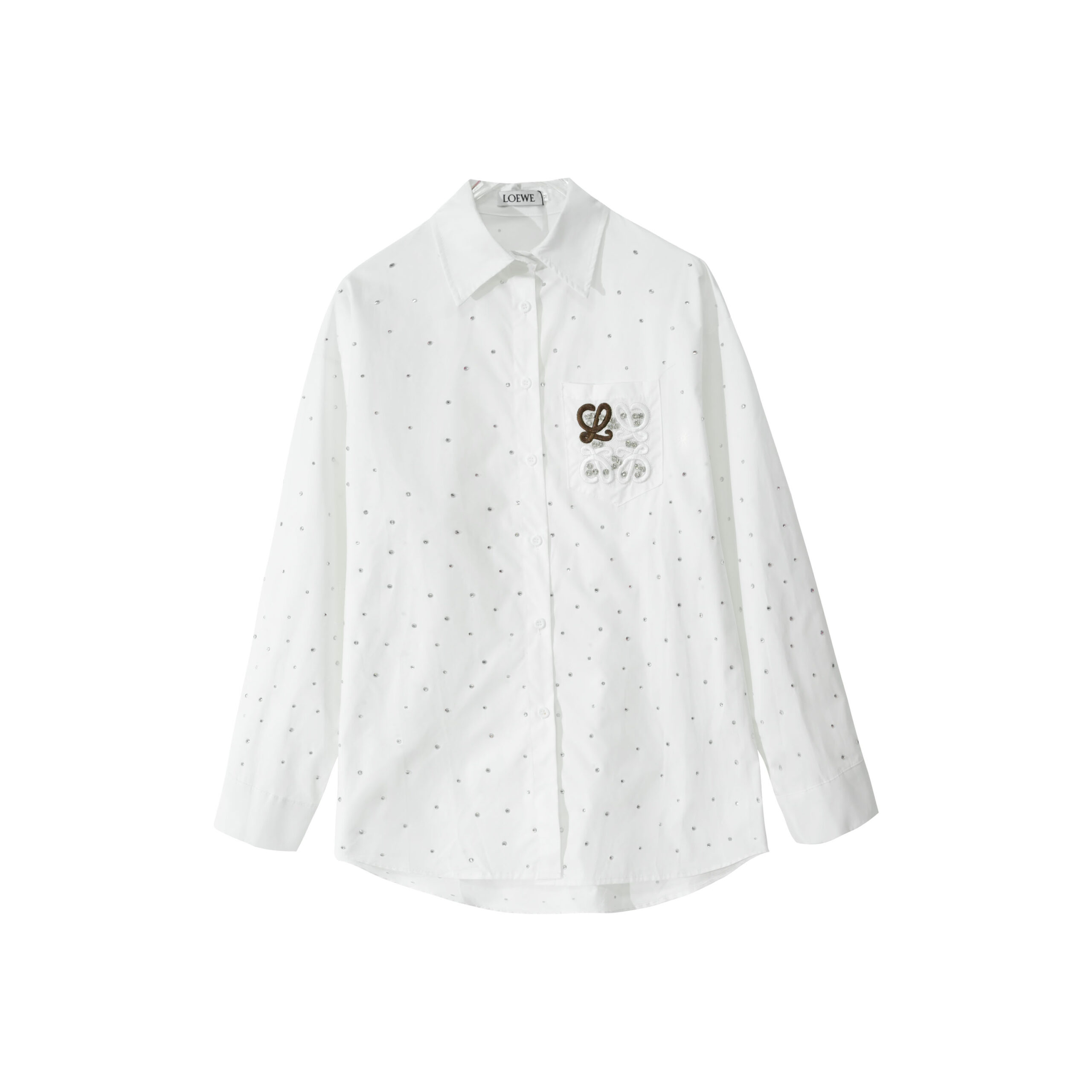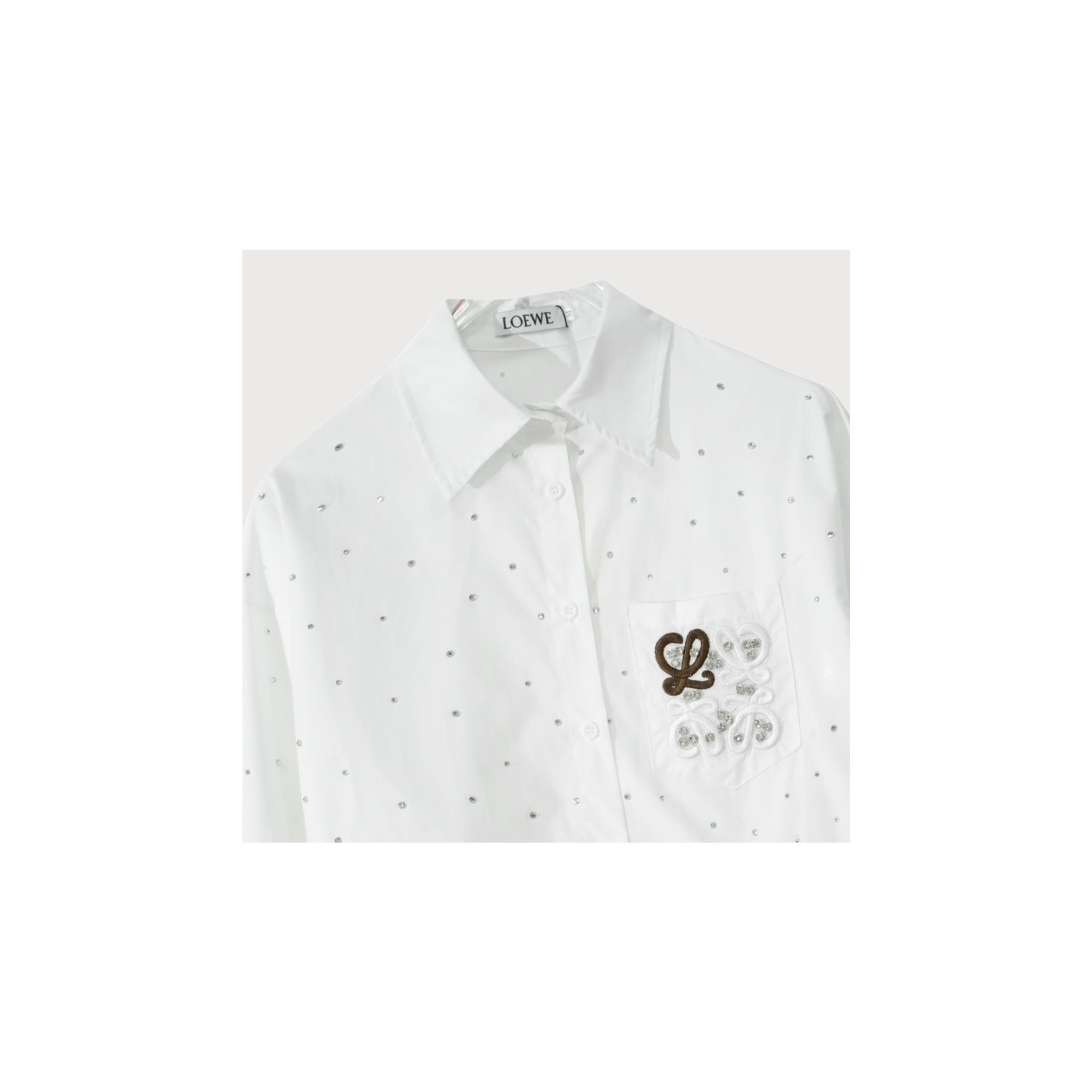 Loewe White Cotton Shirt with Embroidered Logo & Polka Dot Detailing