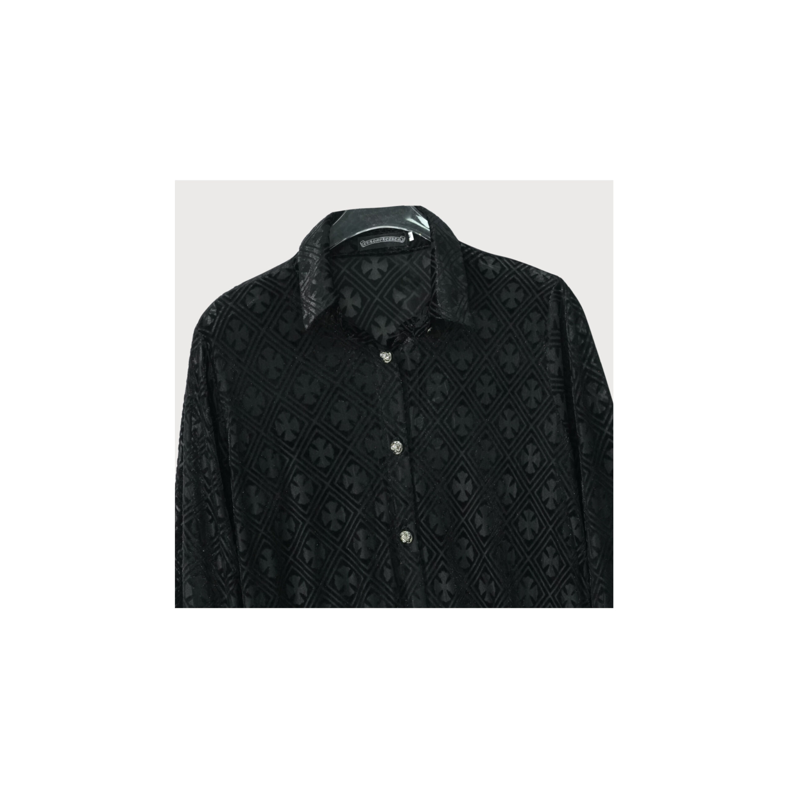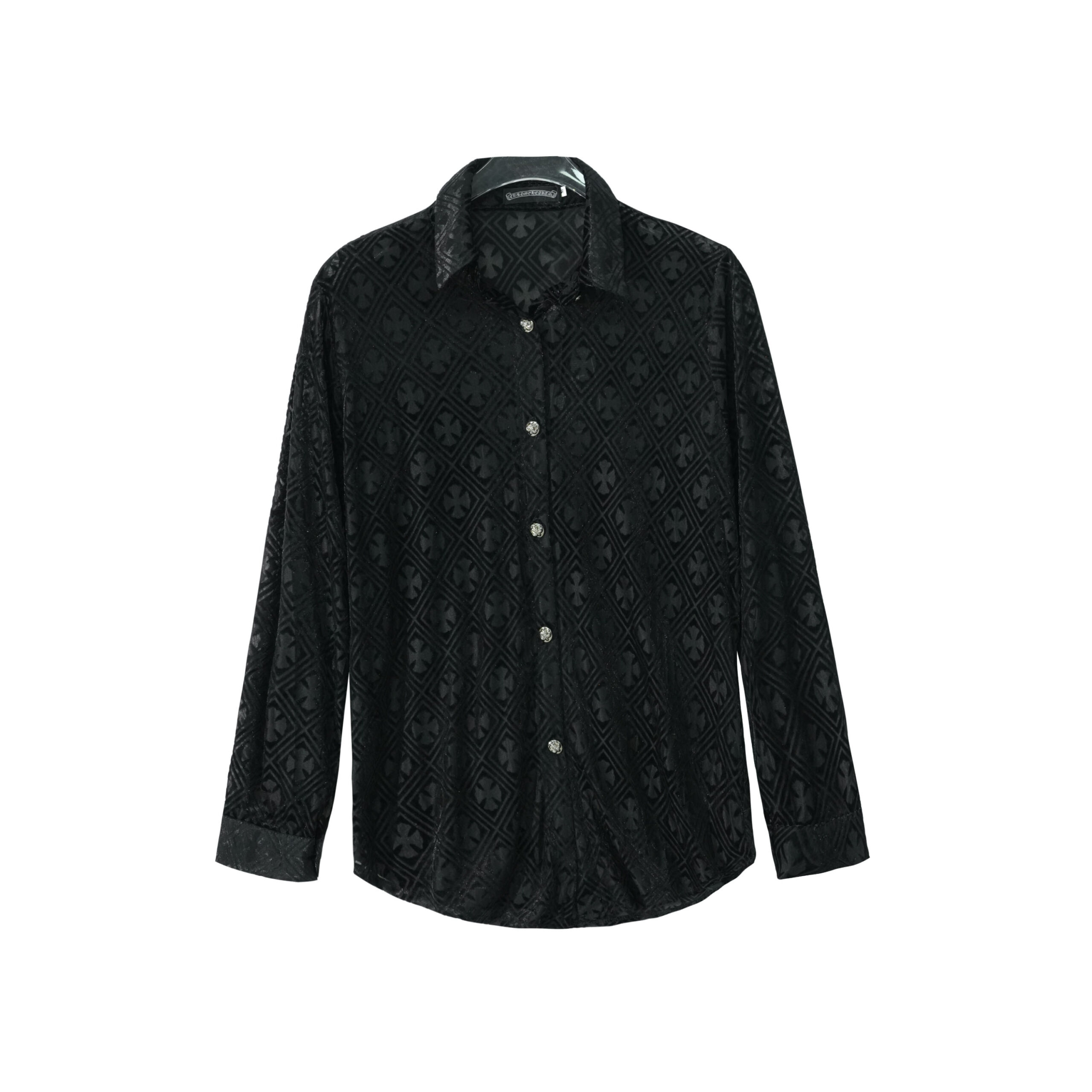 Be the first to review “Luxury Black Textured Shirt with Geometric Pattern & Crystal Buttons”